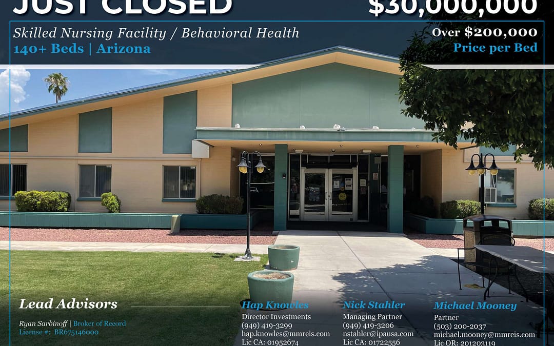 “This transaction underscores the robust demand for specialized healthcare assets with a track record of operational excellence,” said Nick Stahler, Managing Partner. “The facility’s record-setting cash flow relative to its occupancy, stable census trends, and recent capital enhancements positioned it as a standout acquisition, ultimately driving valuation above $200,000 per bed.”